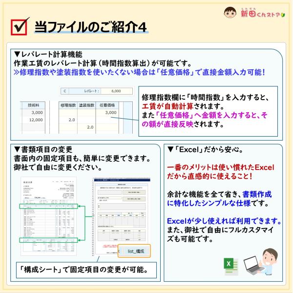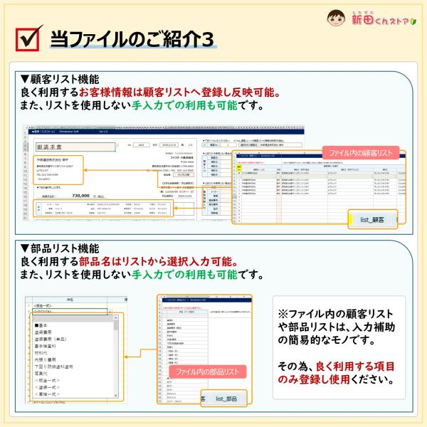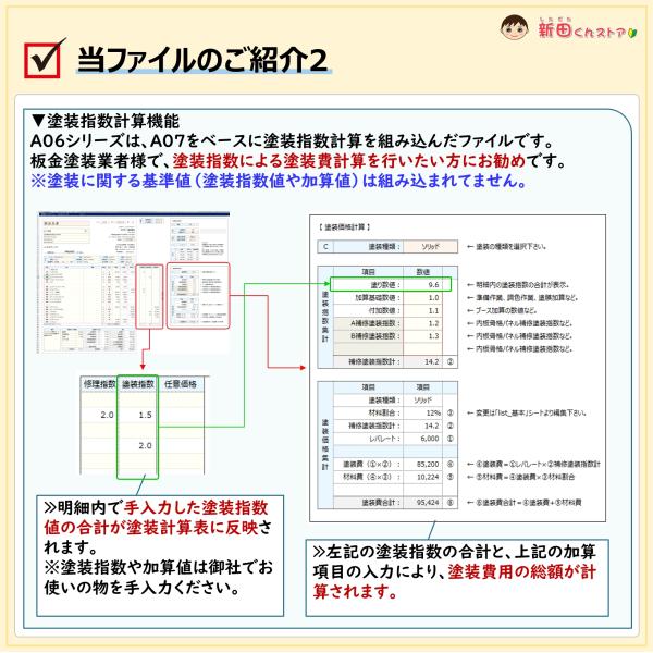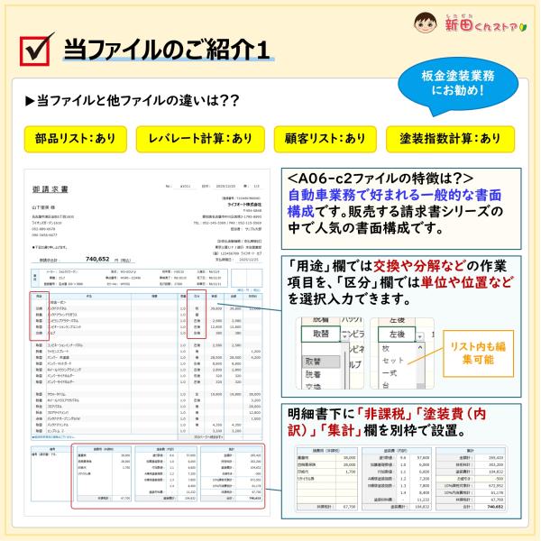 A06-c2 請求書・塗装指数計算タイプ(顧客リスト)自動車板金塗装 Excelファイル 新田くんソフト