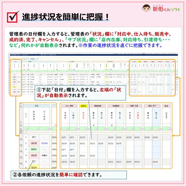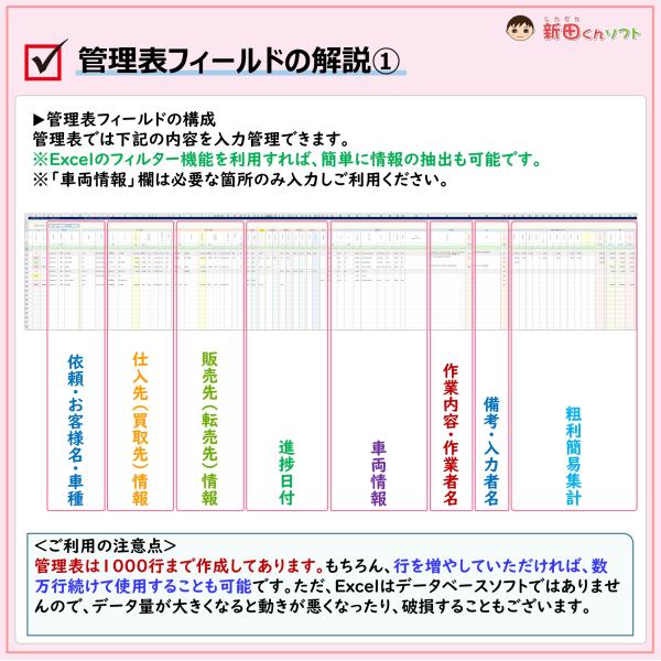 C05‐a1 車両売買管理ファイル(新車・中古車・販売・買取・追加作業)売買台帳 Excel 新田くんソフト