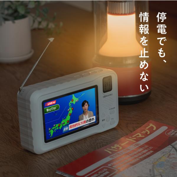 防災テレビラジオ 4.3in ワンセグテレビ FM AM LED ライト SOSアラーム ポータブルテレビラジオ 防災 手回し 小型テレビ SONAERU パイクスピーク 50off