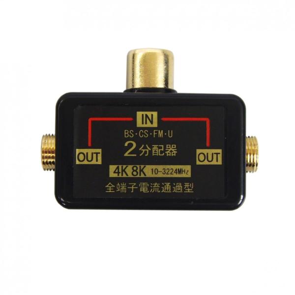 4K 8K放送対応 アンテナ分配器 全端子電流通過型 ワンタッチ アンテナ2分配プラグ ブラック FF-4804BK