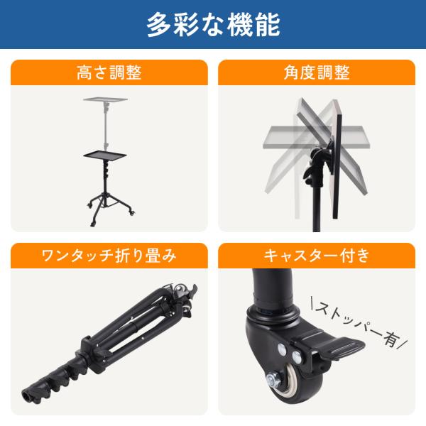 プロジェクタースタンド プロジェクター台 キャスター 三脚 軽量 家庭用 スタンド テーブル 高さ調節 譜面台 パソコンスタンド パソコン台
