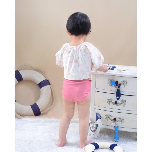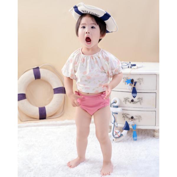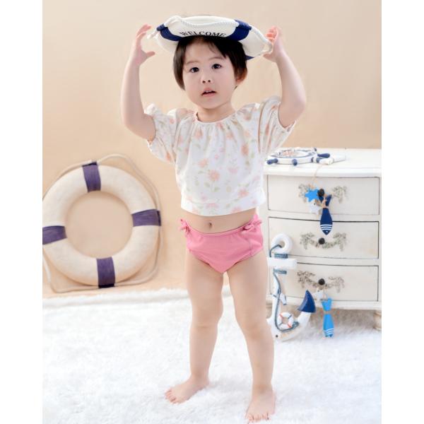 夏最終SALE! キッズ 水着 女の子 2点セット ワンピース かわいい 半袖 パンツ おしゃれ 子供 ベビー 袖あり フレア袖 フリル 背中可愛い 90cm 95cm