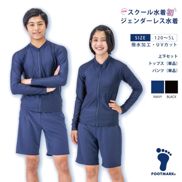 FOOTMARK 男女共用 3L 4L 水着 セパレーツ セット 紺 黒 スクール水着 UV対策 のびる 撥水 ジェンダーレス 学校対応 フットマーク 132350 132352