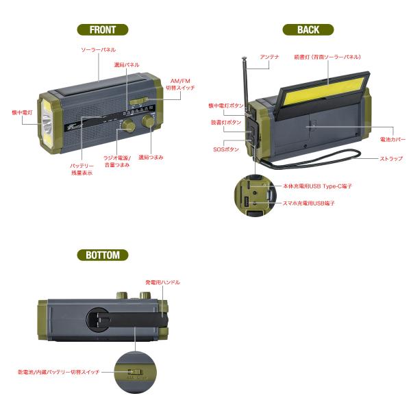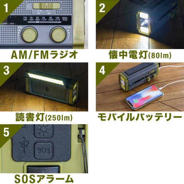 防災ラジオ 多機能 スマホ充電 大容量4500mAh 乾電池 手回し ソーラー AM/FM ラジオ ライト モバイルバッテリー LED SOSアラーム FIELDOOR 1年保証 送料無料