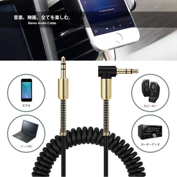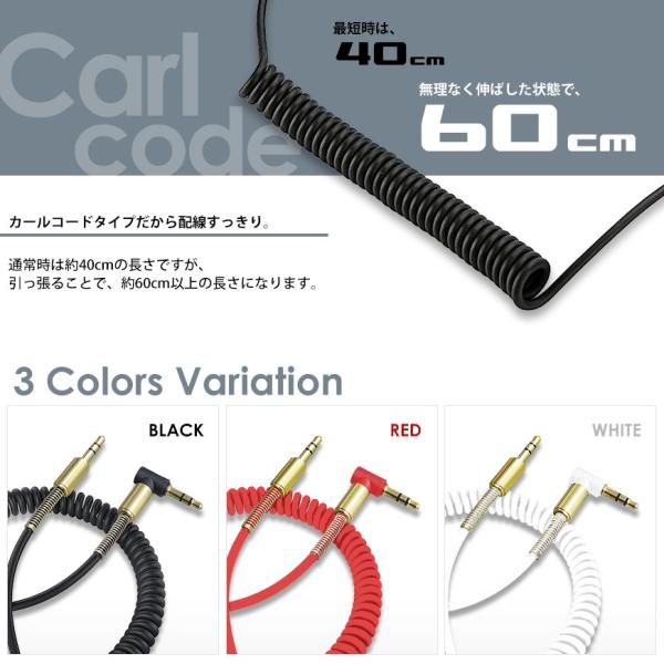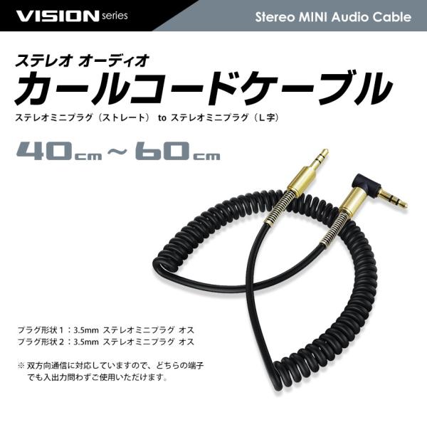 VISION カールコード オーディオケーブル イヤホン ヘッドホン 3.5mm ステレオミニ プラグ ジャック 金メッキ AUX 40cm から 60cm