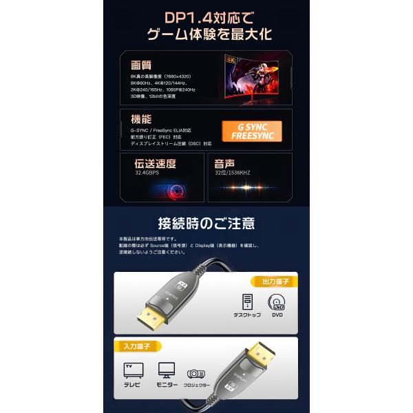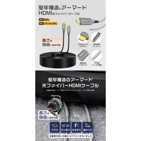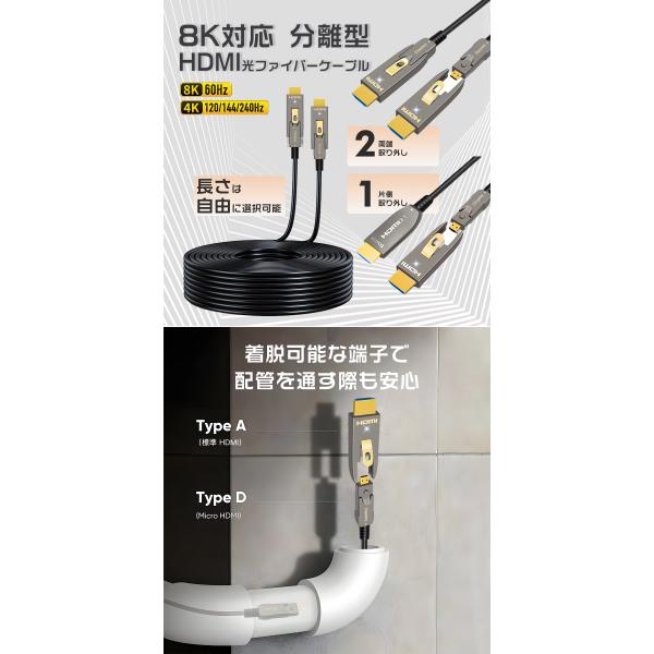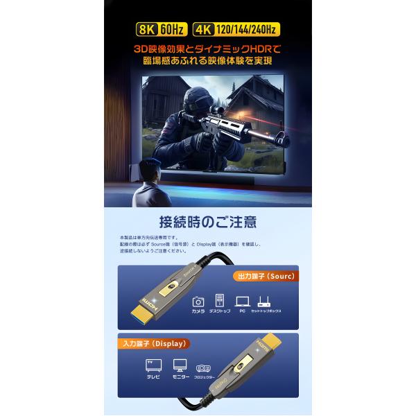 【3680円から】 8K@60Hz 光ファイバー hdmi 2.1 ケーブル 144Hz 遠距離転送 アクティブ HDMI ケーブル eARC AOC-HDMI 送料無料
