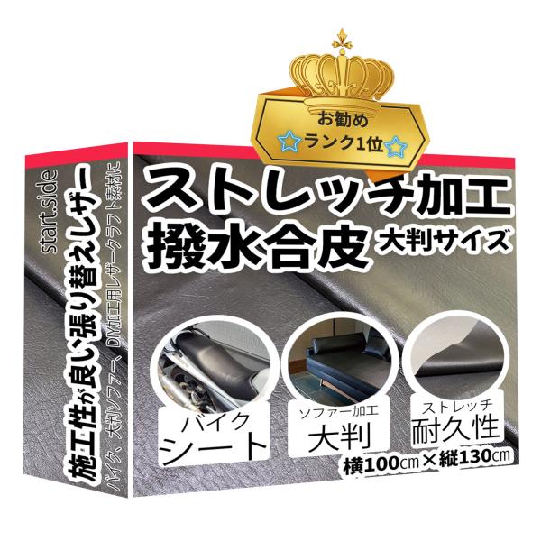 シートレザー バイクシートカバー オートバイ 張替え用 修理 補修 合皮ポリエステル しっかり生地 伸縮性 防水性 黒 横幅100cm 縦幅130cm