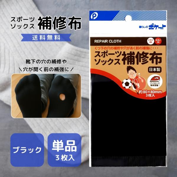 スポーツソックス 補修布 3枚入 ホワイト ブラック アイロン簡単接着 貼り付け簡単 くつ下 靴下 補修 補強