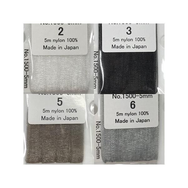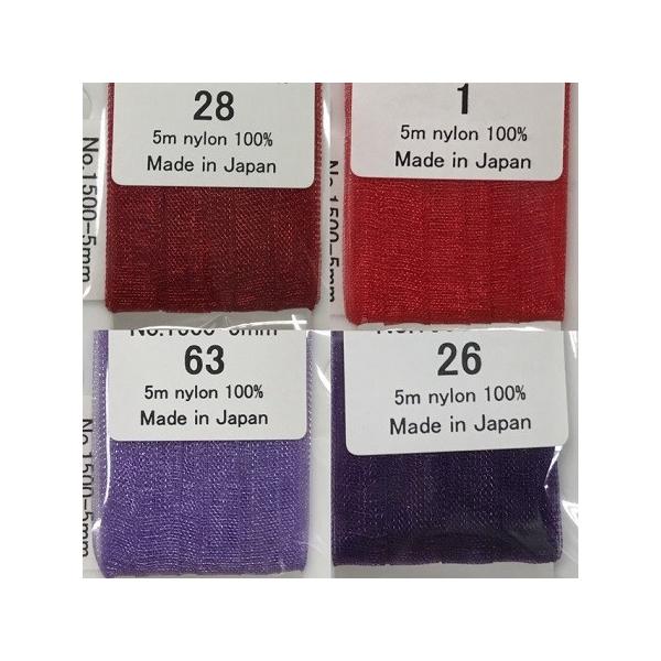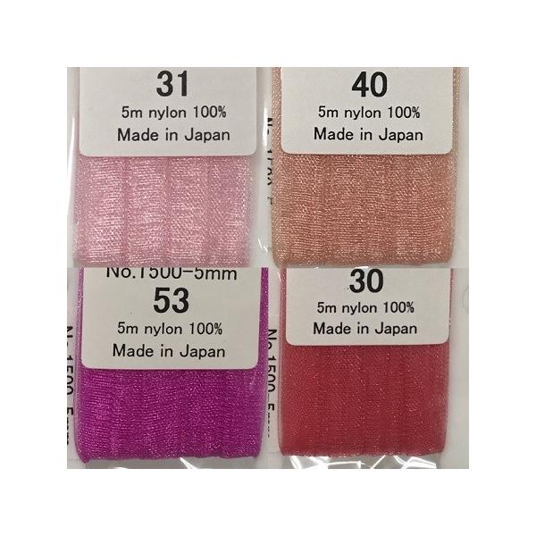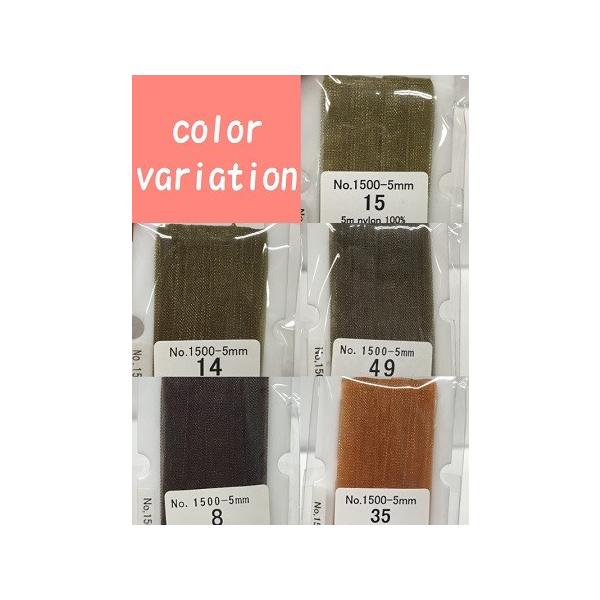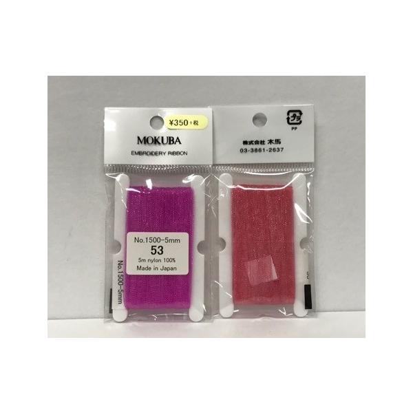 刺繍リボン MOKUBA エンブロイダリーリボン 木馬 オーガンジー 5mm巾×5m No.MER1500-5a 17色/全32色 ピンク系・赤系・紫系・茶系・グレー系・白・黒