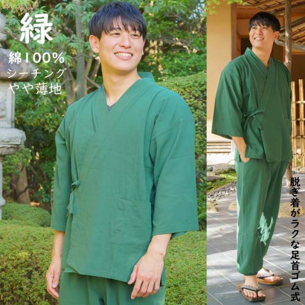 春夏 作務衣 メンズ 綿100% やや薄地 男性 さむえ 部屋着 パジャマ M L LL グレー 緑