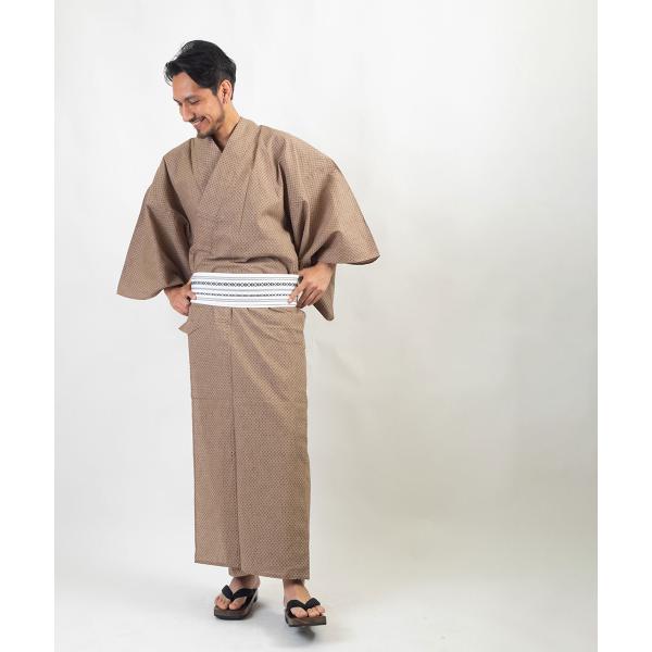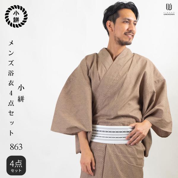 /男浴衣セット/浴衣+帯+下駄+腰紐/IKS小絣メンズ浴衣/お仕立て上がりメンズ浴衣4点セット/浴衣+帯+腰紐+下駄の4点セット/絣柄/ベージュ系/