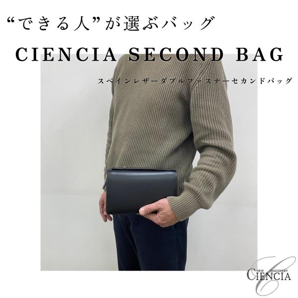 ブラウン入荷待ち 本革 CIENCIA シエンシア スペインレザー ダブルファスナー セカンドバッグ 財布 通勤 ビジネス鞄 クラッチバッグ メンズ 牛革 ブラック CI-04