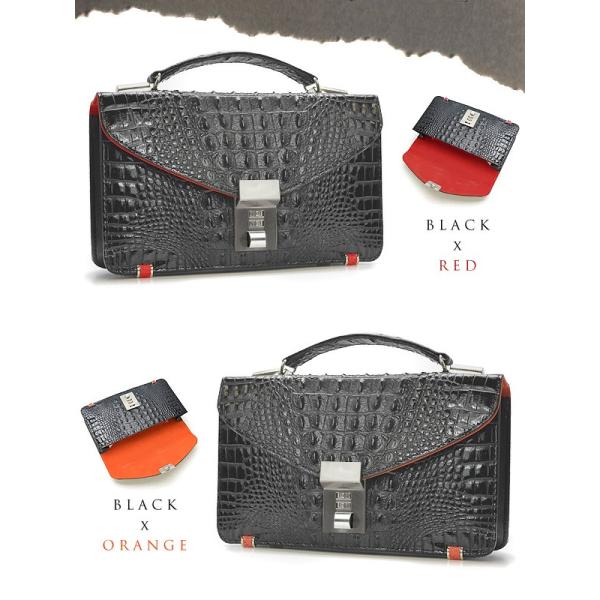 新色追加 セカンドバッグ メンズ 送料無料 RED SMITH 高級牛革リアルクロコダイル型押しセカンドバック 黒赤 メンズ、男性用、紳士用 レッドスミス かばん
