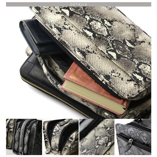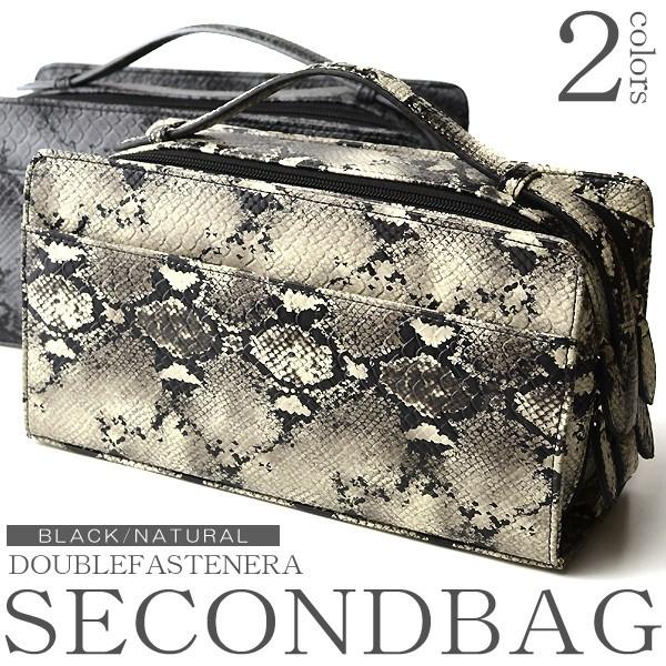 セカンドバッグ 送料無料 メンズ ダブルファスナー 人気 パイソン柄型押し 男性用 紳士用 パイソン柄 大容量 多収納 蛇 ヘビ パイソン BOX ボック