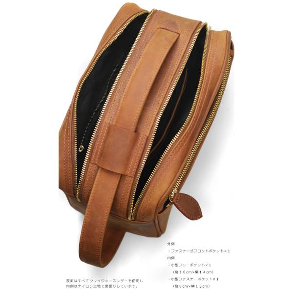 セカンドバッグ メンズ 本革 クレイジーホースレザー フリゲート トリプルジップ セカンドバッグ 日本製 国産 シンプル 国産バッグ ヴィンテージ風