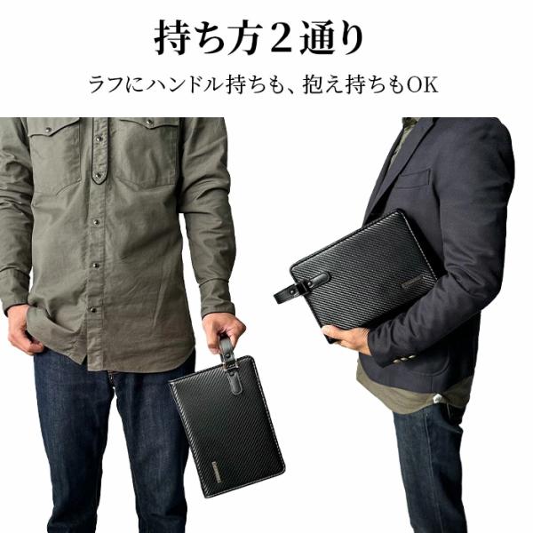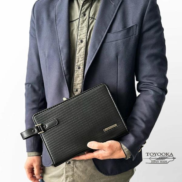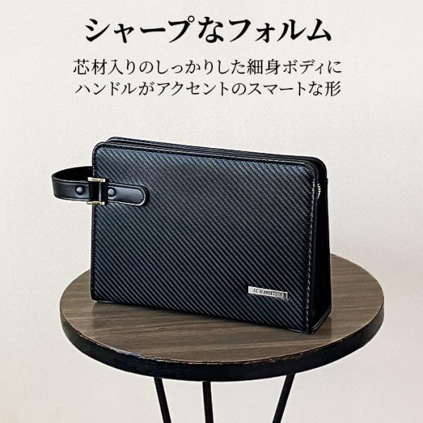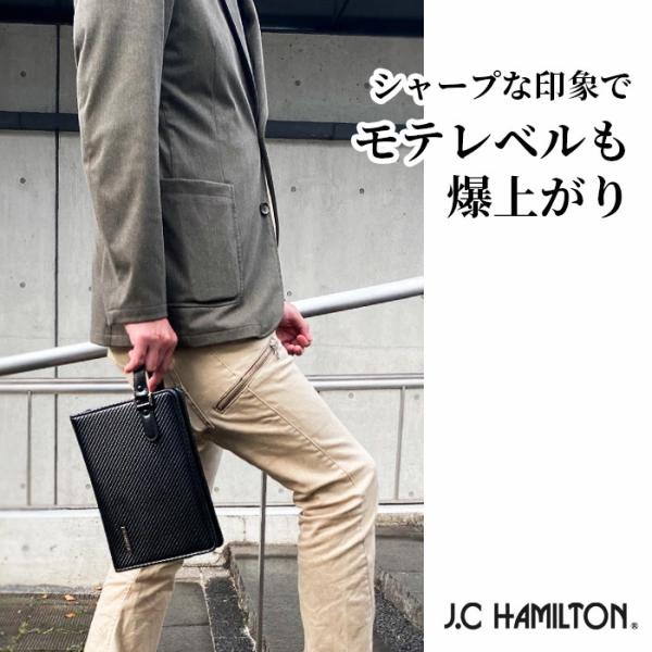 クラッチバッグ セカンドバッグ メンズ 日本製 豊岡製鞄 ハンドル ストラップ カジュアル フォーマル 軽量 カーボン調 横 縦 ギフト J.C HAMILTON KBN25962
