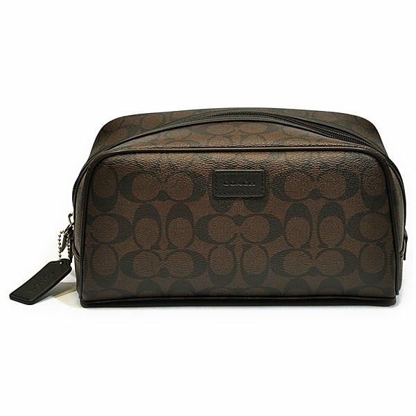 【並行輸入品】 コーチ COACH セカンド バッグ ポーチ メンズ F93310 MA/BR ヘリテージ シグネチャー トラベル キット マホガニー/ブラウン