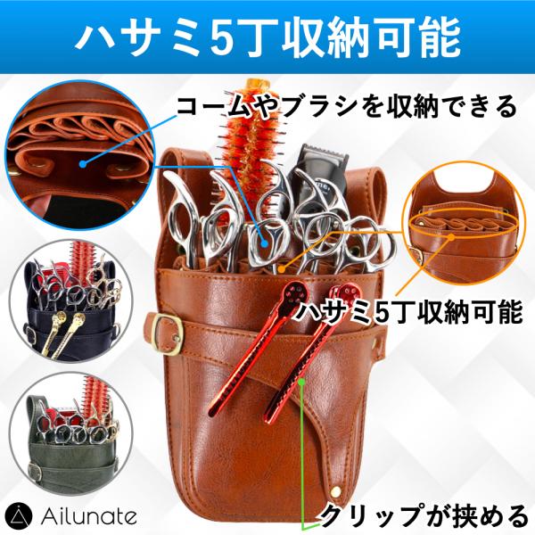 シザーケース 美容師 トリマー 花屋 軽い 5丁 レザー おしゃれ ベルト 持ち運び シザーバッグ