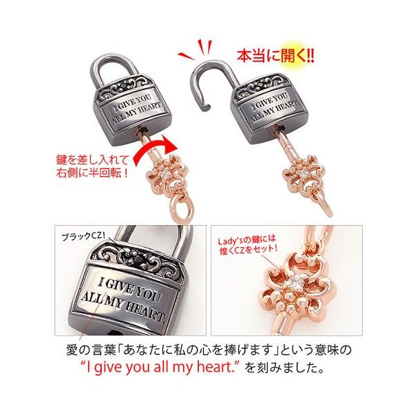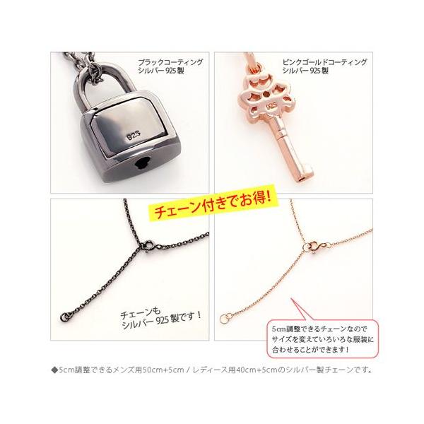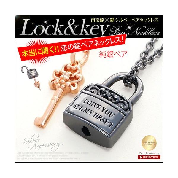 ペアネックレス ペアペンダント シルバーアクセサリー 鍵 カギ 南京錠 本当に開く pe1984-pair チェーン・BOX付きペアセット