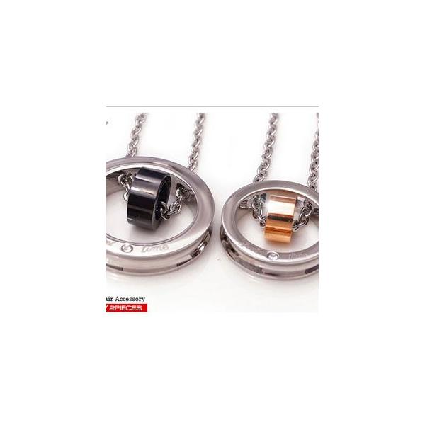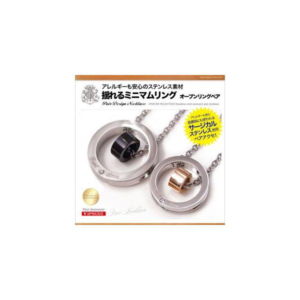 ペアネックレス ステンレス オープンリング シンプル ブラック ピンク spe0303-pair チェーン付きペアセット(ギフトBOX付き)