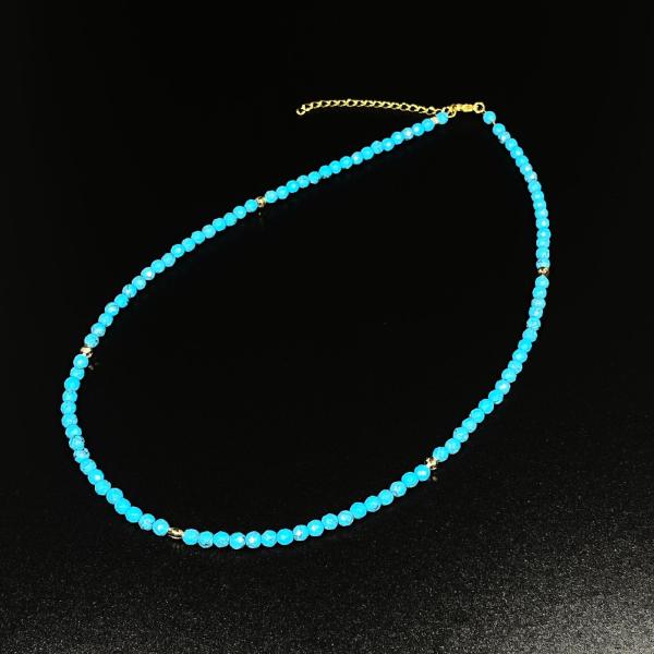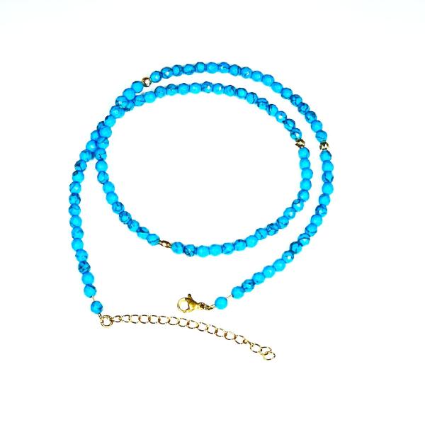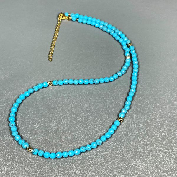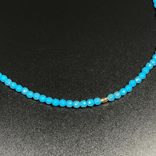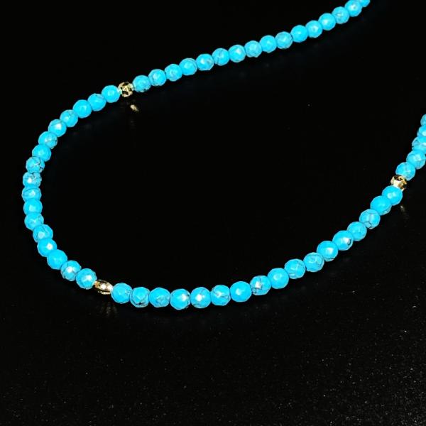 天然石 ネックレス K18 18金 ビーズ カットターコイズ アジャスター有/ KGn2本物ゴールド