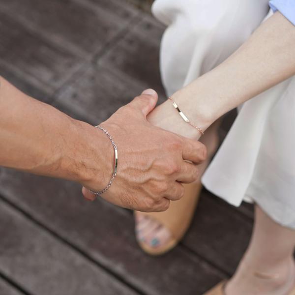 チェーン ブレスレット つけっぱなしok シンプル プレート カップル ペア 記念日 名入れ 刻印 メンズ レディース アレルギーフリー ペア販売 MS AP1003 Alavel