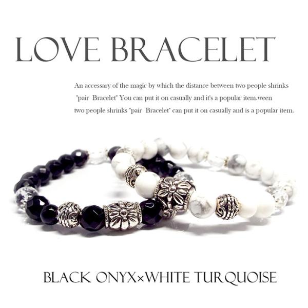 天然石 パワーストーン ブレスレット ペアアクセサリー LOVE BRACELET オニキス×ホワイトターコイズ
