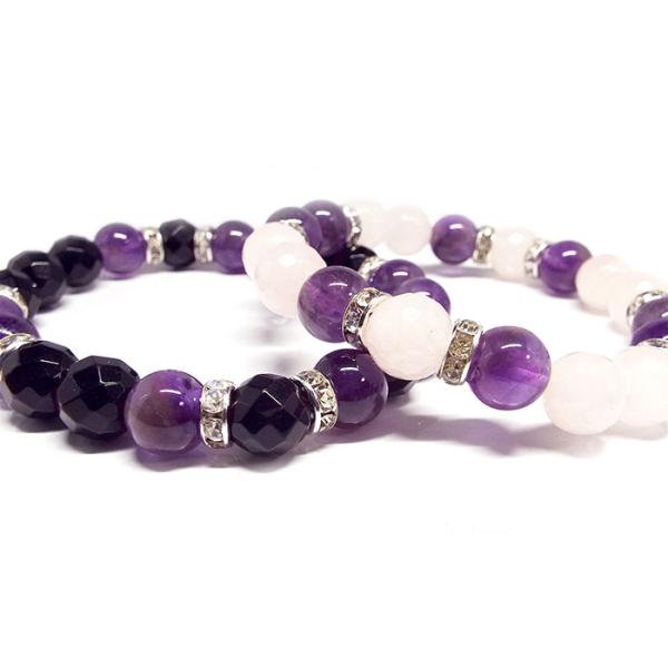 天然石 パワーストーン ブレスレット アクセサリー ローズクォーツ オニキス ペアセット