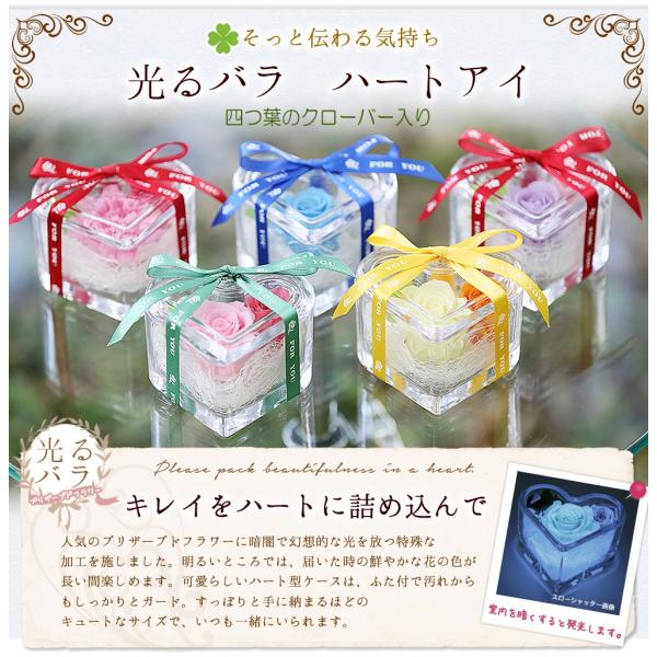 記念日の贈り物 プリザーブドフラワー 誕生日プレゼント 結婚記念日 カーネーション ギフト 四つ葉のクローバー 光る バラ 花 母の日 ホワイトデー 【ハート】