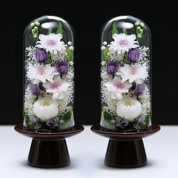 プリザーブドフラワー 仏花 ブリザードフラワ- 仏花 仏壇用 お供え1対 仏花一対 枯れないお花 プリザーブドフラワー ガラスドーム【対デザイン 輪菊Glass】