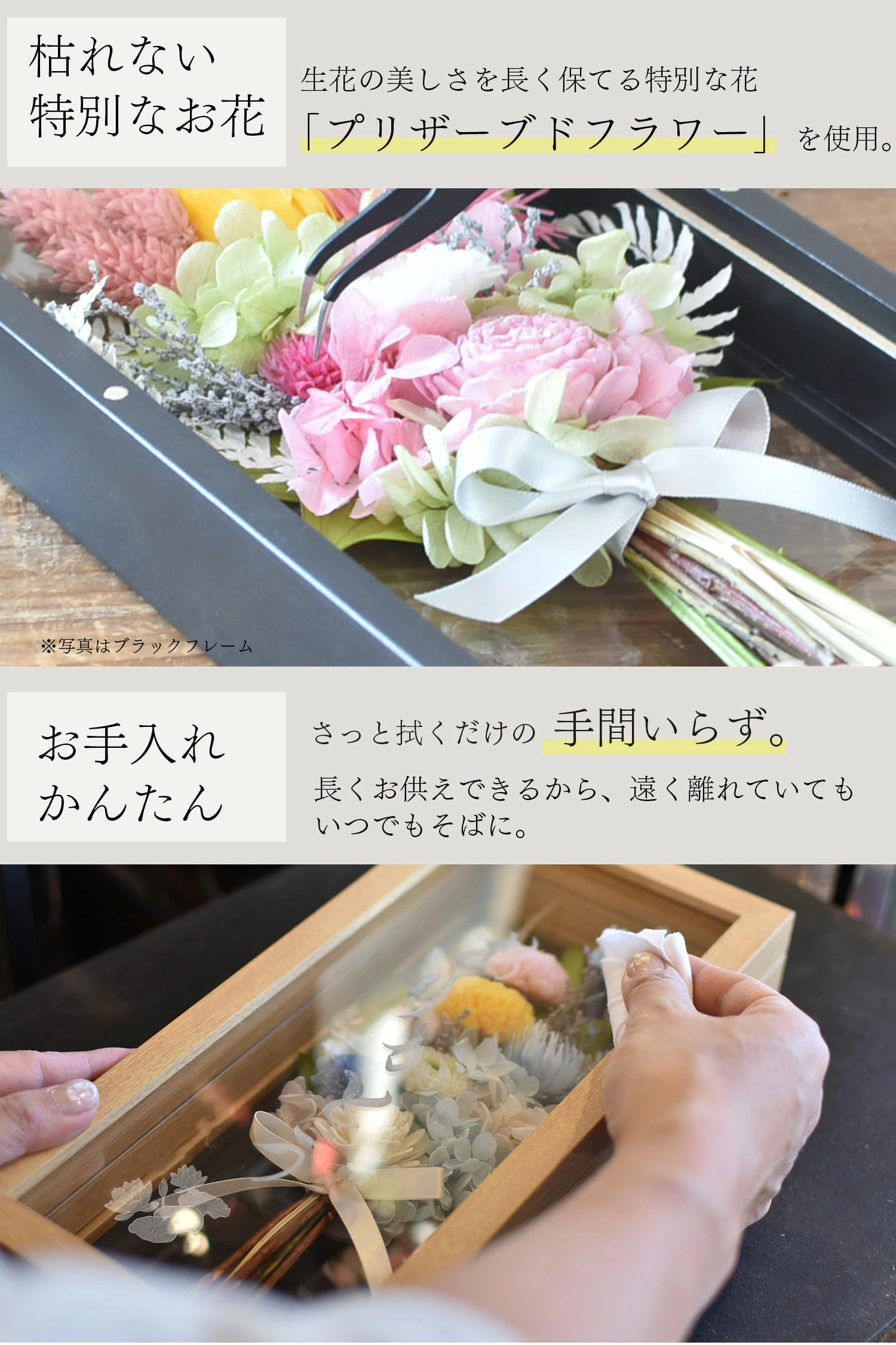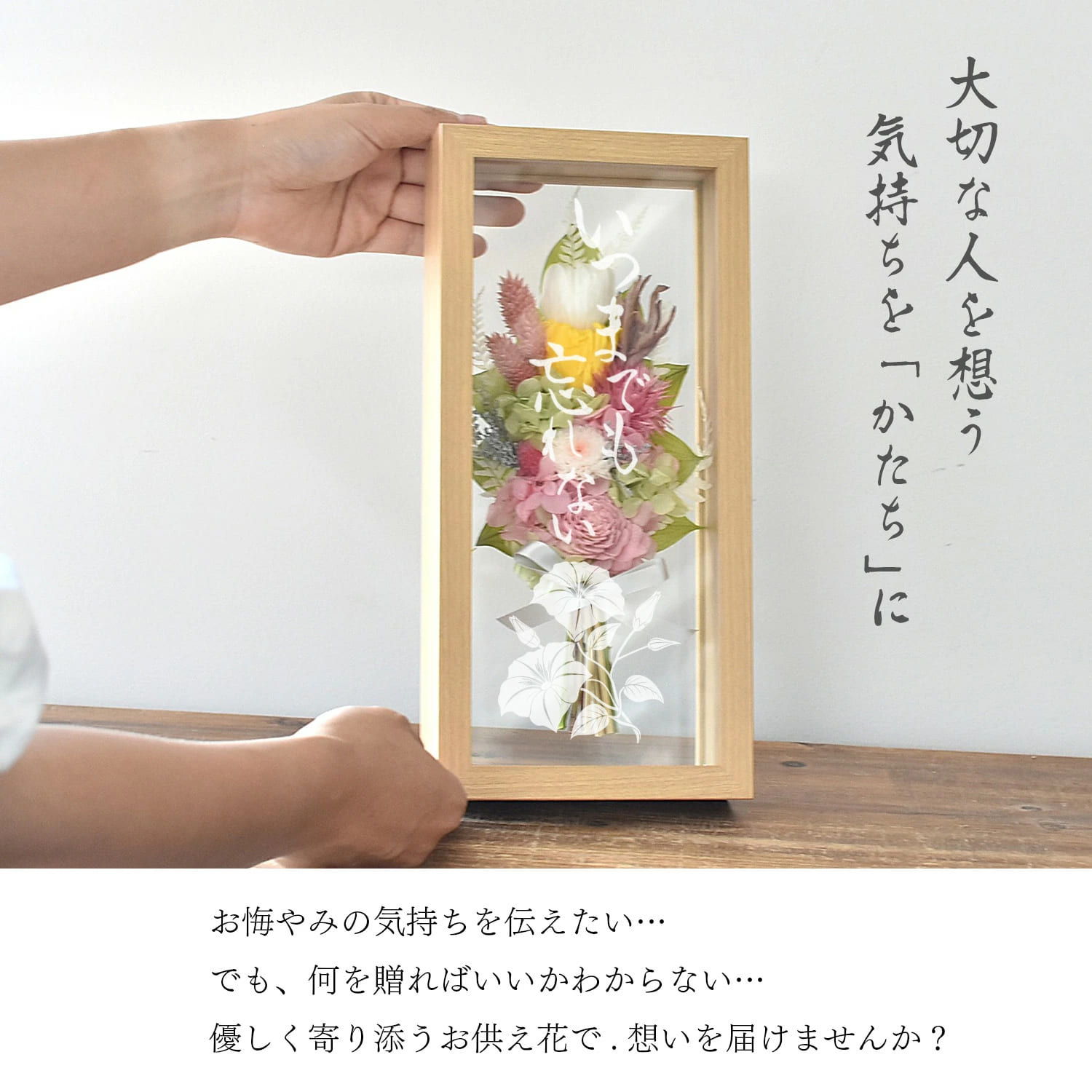 【ナチュラルフレーム仏花線香セット】プリザーブドフラワー 仏花 お供え お悔やみ 電報 花 アレンジメント 法事 四十九日 法要 一周忌 命日 彼岸 お盆 名入れ