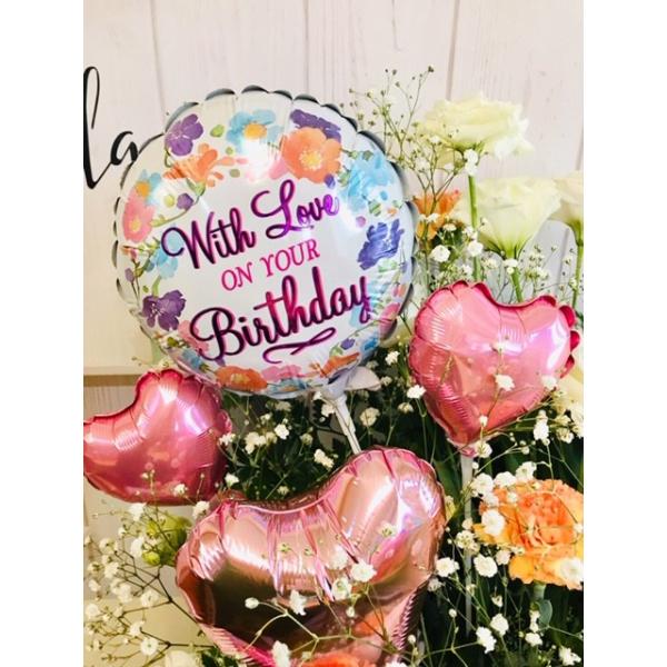 生花とバルーン 誕生日 ギフト 電報 バースデーバルーン 大きなサイズ豪華で人気です