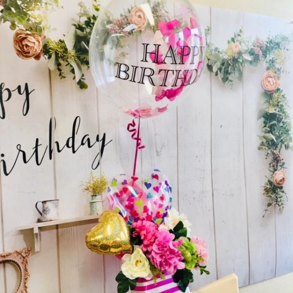 コンフィバルーン 誕生日 ギフト 電報 お花とハートのバースデー フラワーバルーン 人気NO1