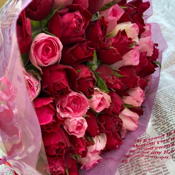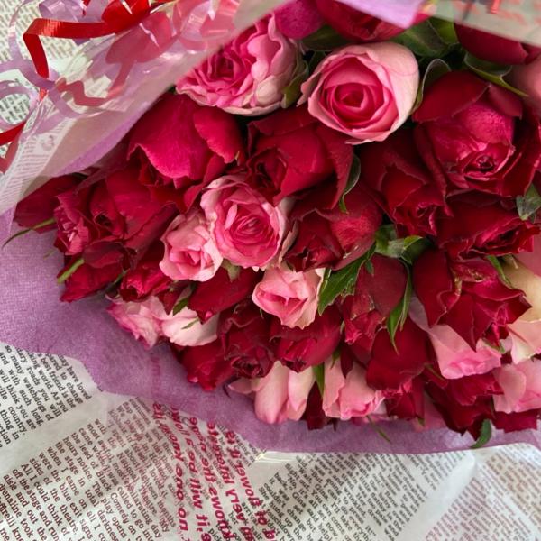 *赤とピンクの花束*30cm 60本 ラッピング込 還暦・プロポーズ・誕生日など instagramアレンジ動画公開中! https://www.instagram.com/rosenet.oyamarose/