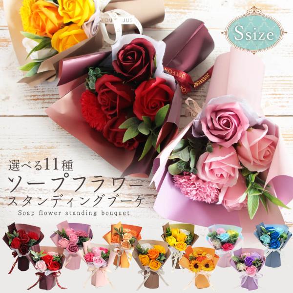 ソープフラワー プレゼント 即日出荷 スタンディングブーケ S 花束 母の日 誕生日 結婚祝い そのまま飾れる 誕生日プレゼント 退職祝い 赤 ギフト バラ