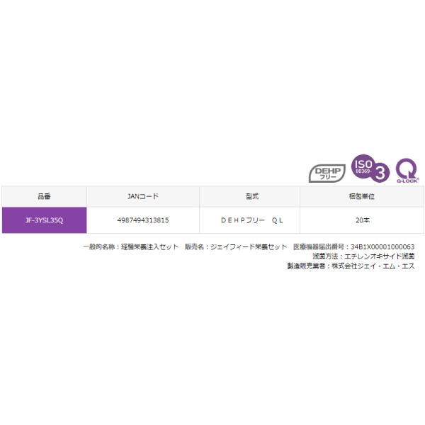 JMS ジェイフィード栄養セット JF-3YSL35Q 20本 経腸栄養注入セット 一般医療機器:医薬品注入器 医療機器届出番号:34B1X00001000063