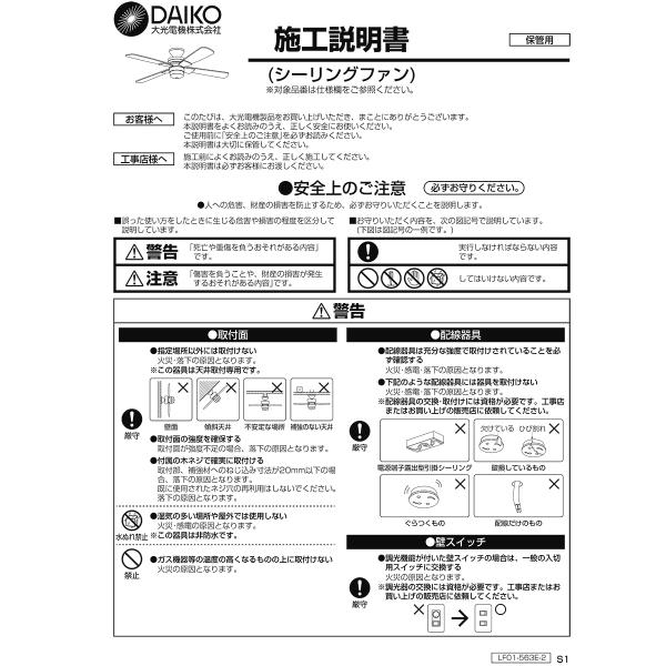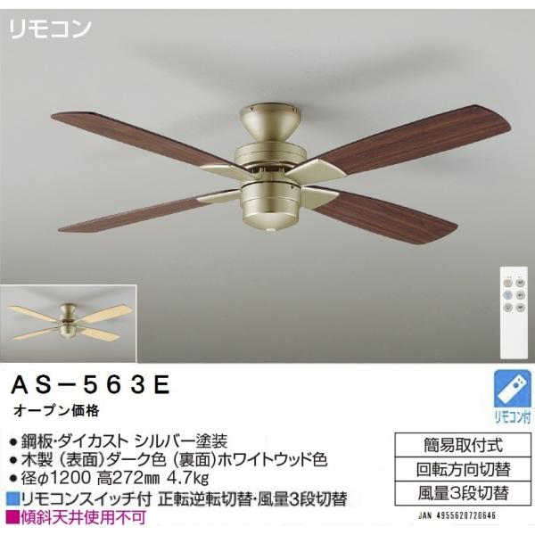 DAIKO シーリングファン 簡易取付式 (リモコンスイッチ付) 本体シルバー 正転逆転切替 風量3段切替機能付 1200mm ファンのみ AS-563E