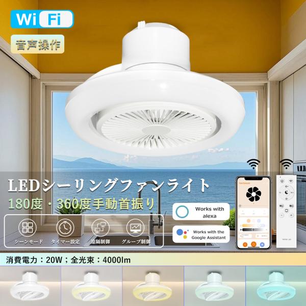 シーリングファンライト led 調光調色 シーリングファン 首振り 薄型 北欧 天井照明 おしゃれ 6-8畳 照明器具 シーリング 扇風機 小型 dcモーター リモコン操作