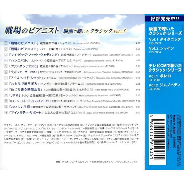 【おまけCL付】新品 戦場のピアニスト 映画で聴いたクラシック Vol. 3 (CD) EJS2035