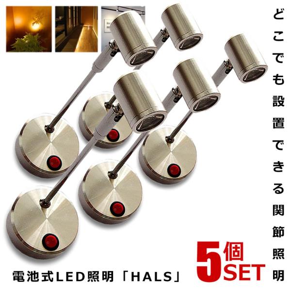 5個セット スポットライト バックライト 照明 ホワイト Aサイズ ハルス 配線不要 LEDライト ロングTYPE ショーケース 電池式 角度調節可能 人気 HALS-A-WH