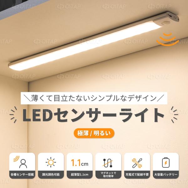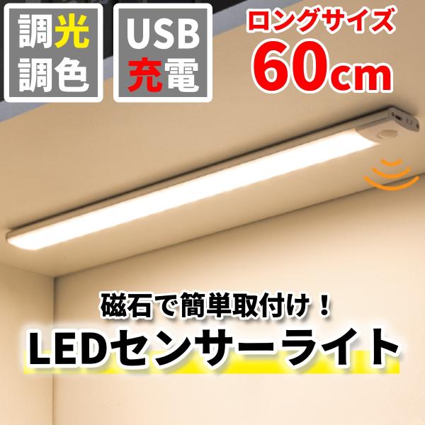 人感センサーライト 室内 LED 足元灯 自動 明暗センサー 充電式 磁石 玄関 廊下 屋内 コードレス 大きい ロングサイズ 60cm