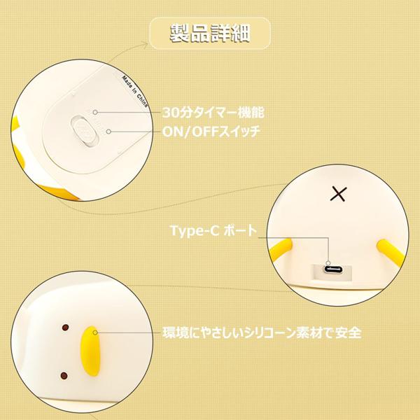 ナイトライト アヒル型 LED テーブルライト USB充電式 タッチ調光 タイマー付き シリコン製 授乳用 枕元照明 寝室 おしゃれ 間接照明