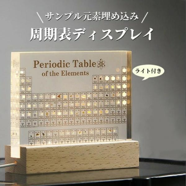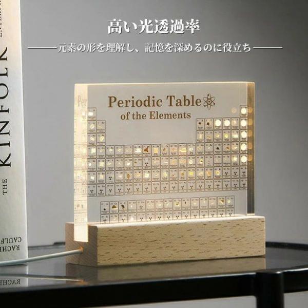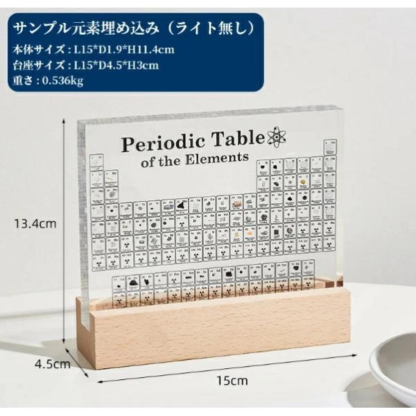 実物実際の元素の周期表 83種実物 元素入り アクリル 周期表 ディスプレイ 化学 元素記号 元素表 一覧 木製LEDベース付き 学習ツール 学用品 子供 教育 学校 科