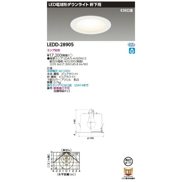 [法人限定] LEDD-28905 東芝 LED ダウンライト E26軒下Φ150 ※ランプ別売 [ LEDD28905 ]
