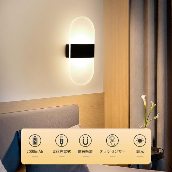 壁掛け灯 LED ライト タッチ式 USB 充電式 間接照明 タッチセンサー コードレス 無線 調光 授乳ライト 読書灯 夜間照明 懐中電灯 非常灯 防災 磁気 磁石 暖色 白