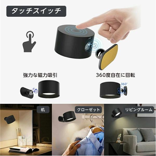 ブラケットライト ライト 3段階 調光調色 360°照明 角度調整 工事不要 コードレス 洗面所 北欧 レトロ おしゃれ 壁付けランプ 玄関ライト 照明 読書ライト