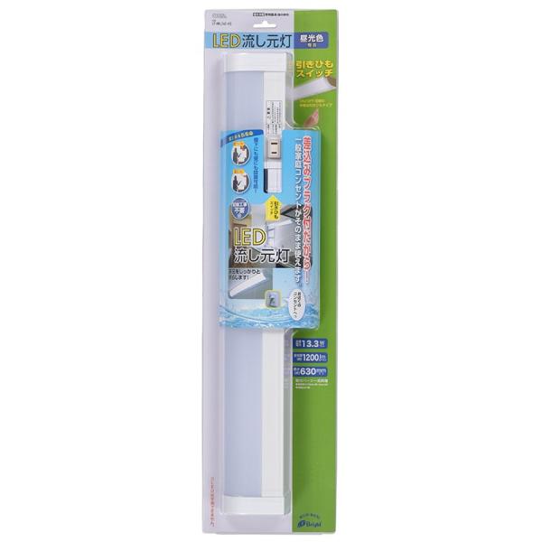 LED流し元灯 20形 昼光色 引きひもスイッチ 電源コード付_LT-NKL14D-HS 06-4021 オーム電機