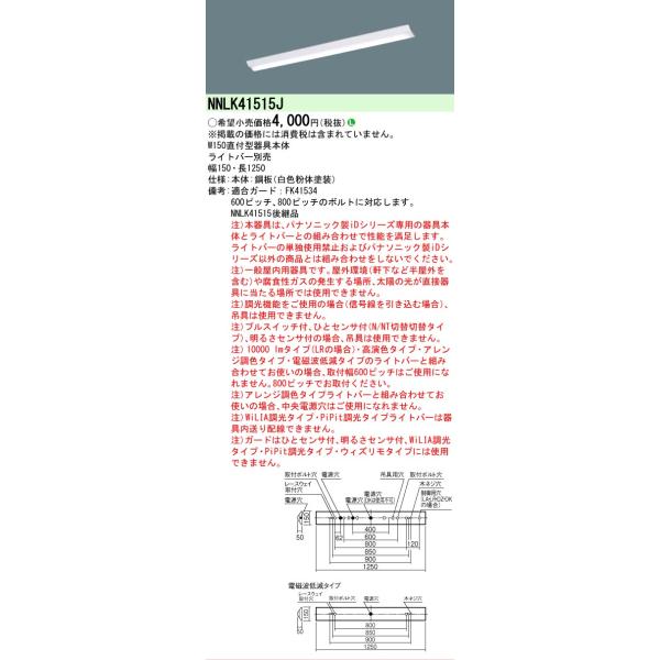 ▲納期未定[法人限定] NNLK41515J パナソニック iDシリーズ 器具本体のみ【ライトバー別売】天井直付 [ NNLK41515J ]