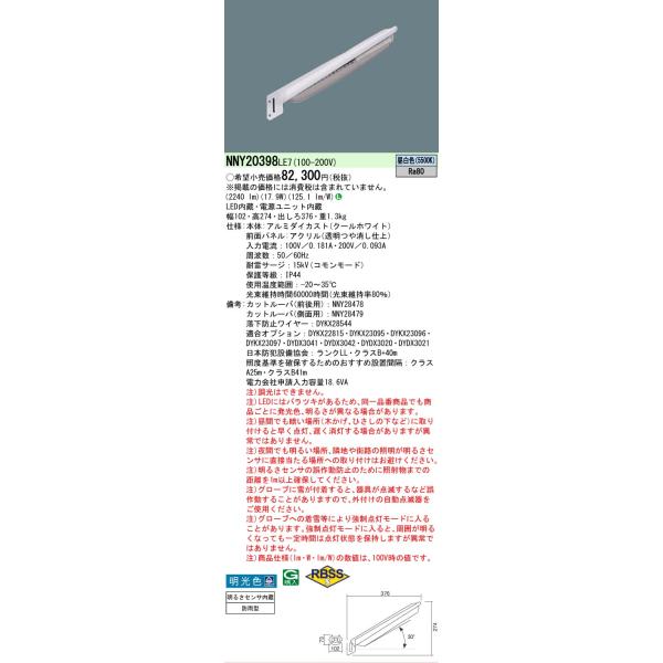 [法人限定][即納在庫有り] NNY20398 LE7 パナソニック LED 昼白色 防犯灯 屋外 明光色 防まつ型 明るさセンサ内蔵 AreaLux パネル付型 [ NNY20398LE7 ]