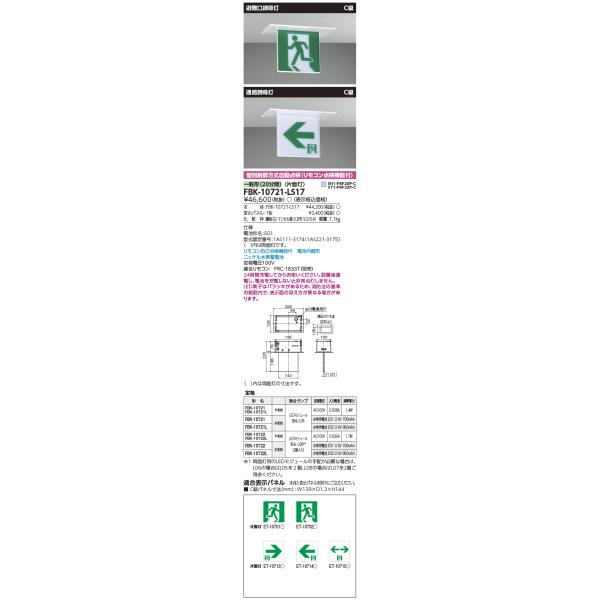 [法人限定][即納在庫有り] FBK-10721-LS17 東芝 C級天井 埋込 片面 誘導灯 ※表示板別売 [ FBK10721LS17 ]